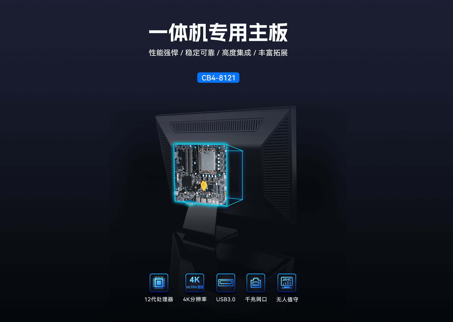 而一体机主板作为一体机的核心组件,其性能直接决定了整机的表现,K8凯发科技根据以上的市场情况及客户需求,推出这款高性能的基于Thin mini ITX一体机标准设计的一体机专研主板CB4-8121。