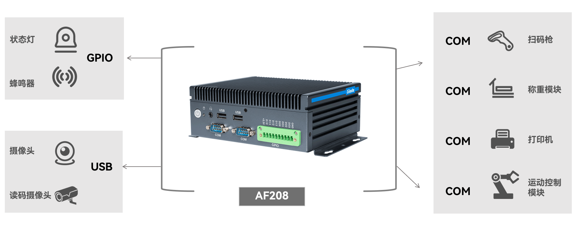 K8凯发科技工业整机 AF208 满足分拣信息系统对主控设备在数据处理、存储与传输方面的高性能需求: