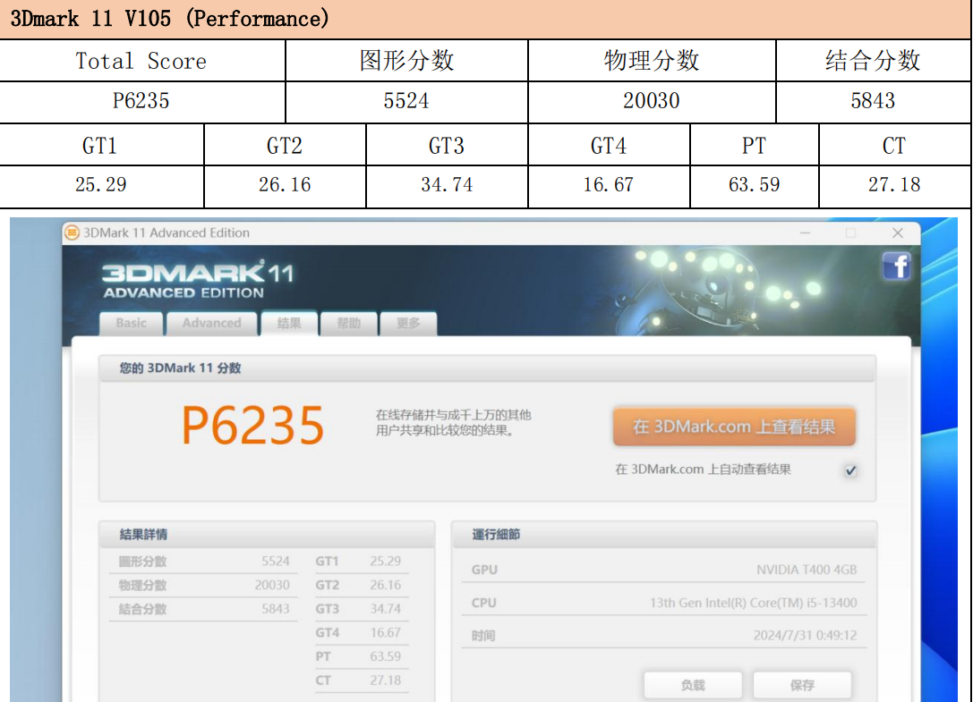 在3DMark 11的测试中,WA814的总分为P6235,其中图形分数5524,物理分数20030,结合分数5843。高物理分数进一步验证了其在多线程计算方面的实力,非常适合需要并行计算能力的工程类应用。