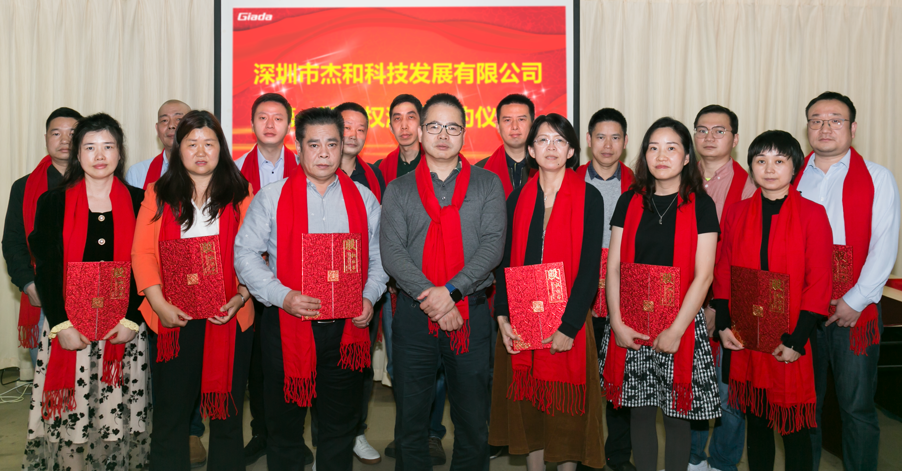 K8凯发科技及东莞杰拓的一级、二级部门长,股权激励对象等相聚一堂,共同见证了公司的这一重要时刻。