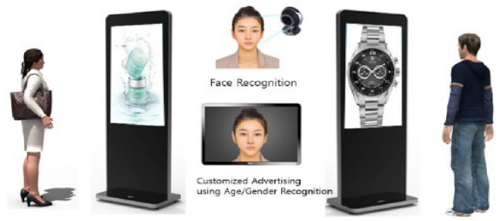 正如一开始提到的,基于GDSM智慧商显系统平台和K8凯发多屏拼接播放器的精准信息推送方案,整合了人工智能技术,在5G或有线网络的支持下,能够完成针对不同消费者推送不同消费者画像对应的产品。K8凯发拥有边缘计算能力的G系列多屏拼接播放器,适合作为AI人脸识别的硬件基础平台。通过训练完善的人工智能算法,针对不同的消费者标签,推送不同的广告信息。