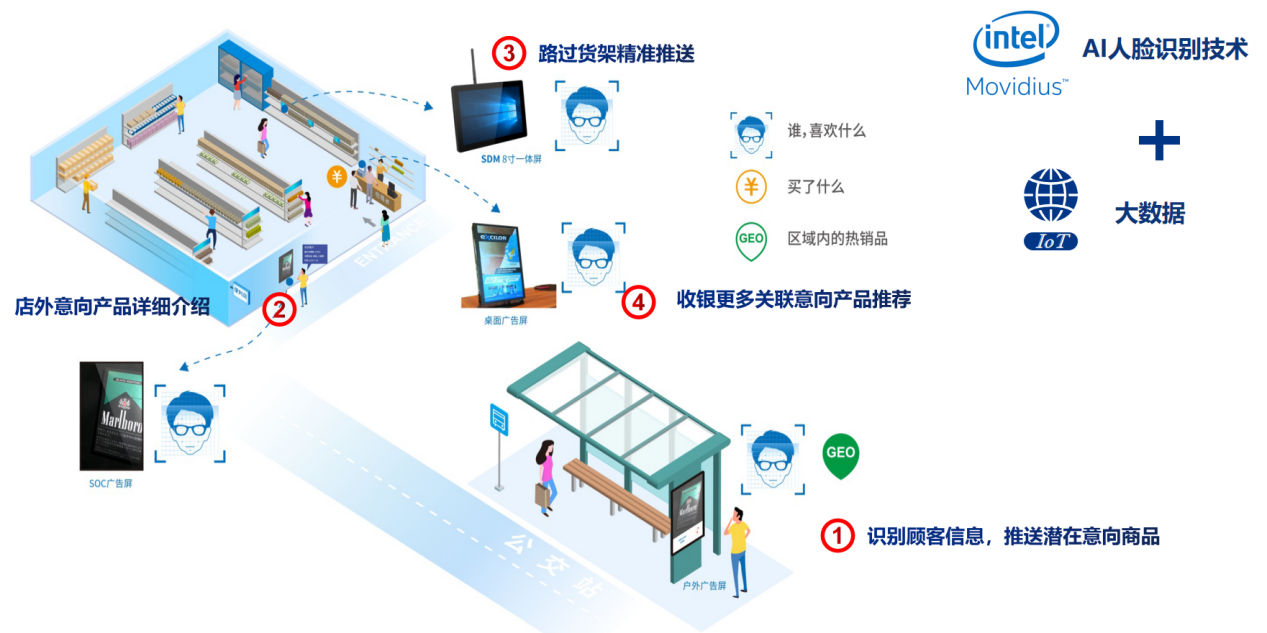 拥有AI视讯技术加持的K8凯发GDSM智慧商显管理平台,直接提升了零售业精准营销的效率。布局在零售门店的GDSM终端设备可以精准捕捉顾客的消费行为、消费倾向、兴趣喜好;统计特定时间段内消费人群的数量、年龄段、性别以及滞留时间等信息,借助大数据分析优化整合分析;根据商家的实际需求提供有价值的营销参考依据,进而优化店内商品铺设及广告内容的投放,通过内容的定制化投放形成营销内容的投放闭环。