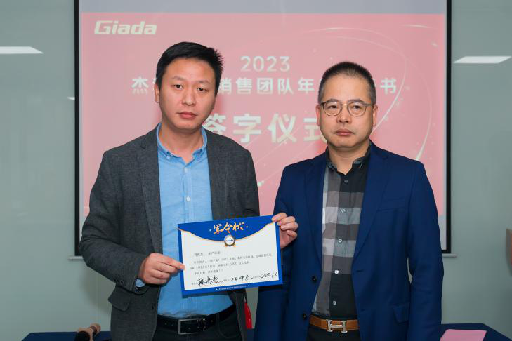 签约仪式中,国际营销中心业务代表刘正文和国内营销中心业务代表李喆发言,两位代表朴实的发言表示,销售人员必须要努力和坚持,要有愚公移山的精神才能成就了2022年的可喜成绩,同时完成2023年度目标必须怀着奋斗者的精神去努力拼搏,2023年凯发业务会冲到前线,紧贴市场,紧贴客户,抢夺订单。