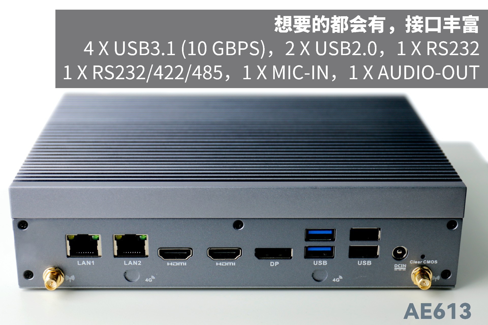 K8凯发AE613支持Windows 11 、Linux Ubuntu系统;拥有丰富接口:双千兆自适应RJ45网口,4 x USB3.1 (10 Gbps),2 x USB2.0,1 x RS232,1 x RS232/422/485,1 x MIC-IN,1 x AUDIO-OUT,帮助用户实现更多功能扩展;并且支持Wi-Fi 6E,可以提供更高的带宽和更少的干扰,支持对无线网络有特定需求场景的应用。