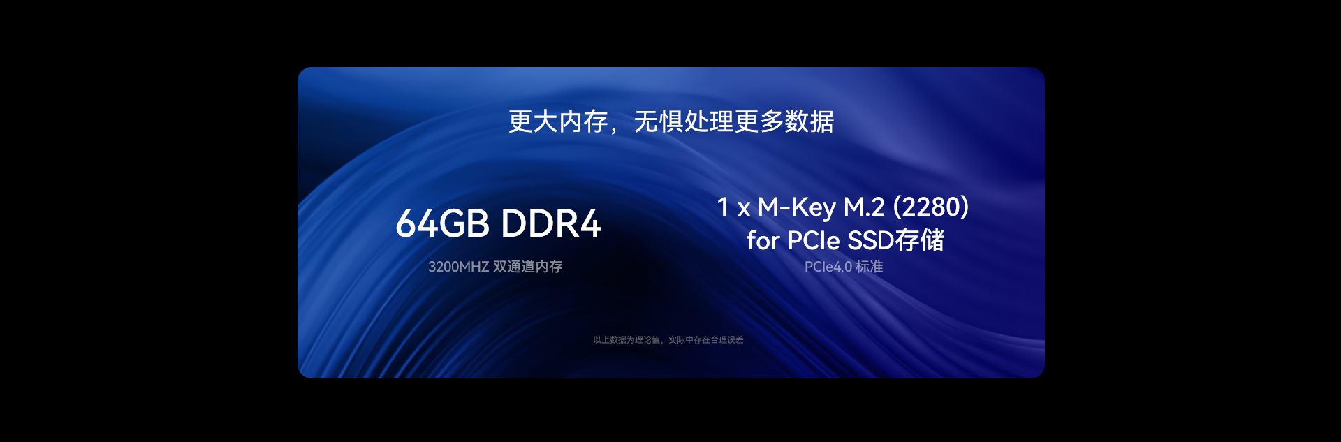 采用双通道DDR4内存设计,最大可扩展至64GB