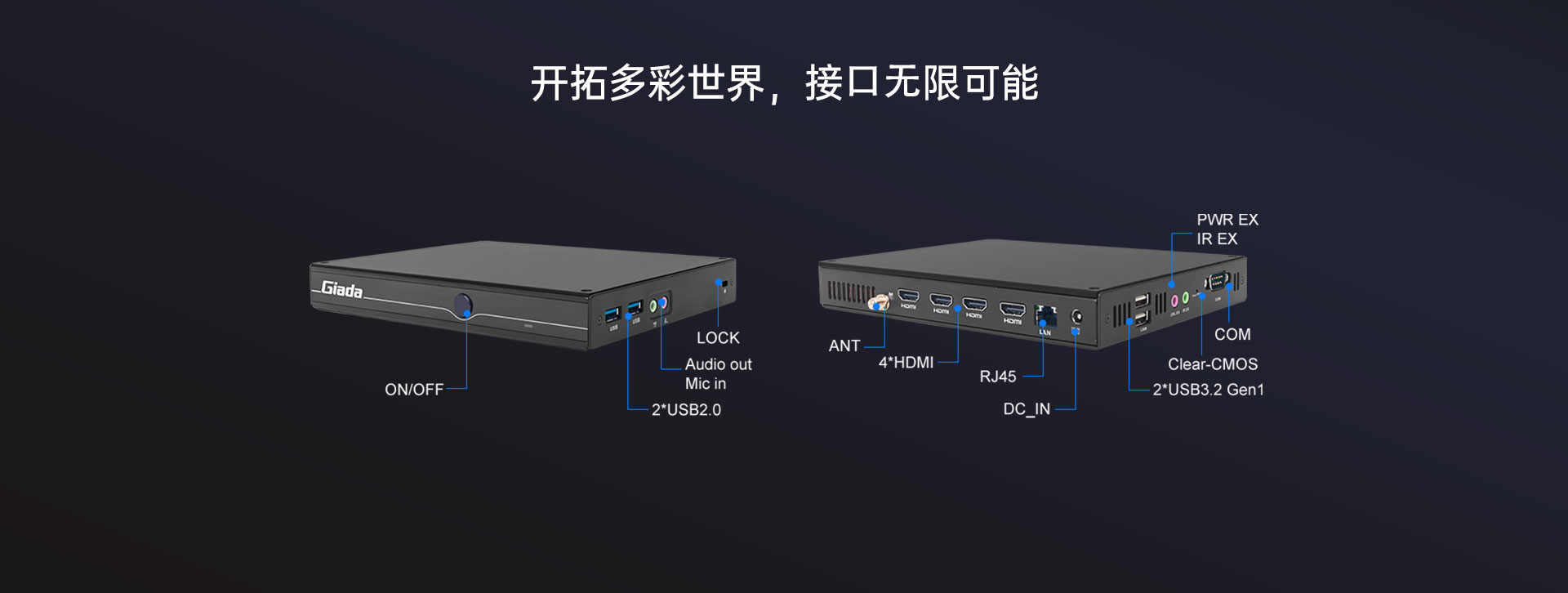 支持1x RJ45,1x 全高Mini-PCIe扩展WiFi/BT/3G/4G,1x SIM卡槽